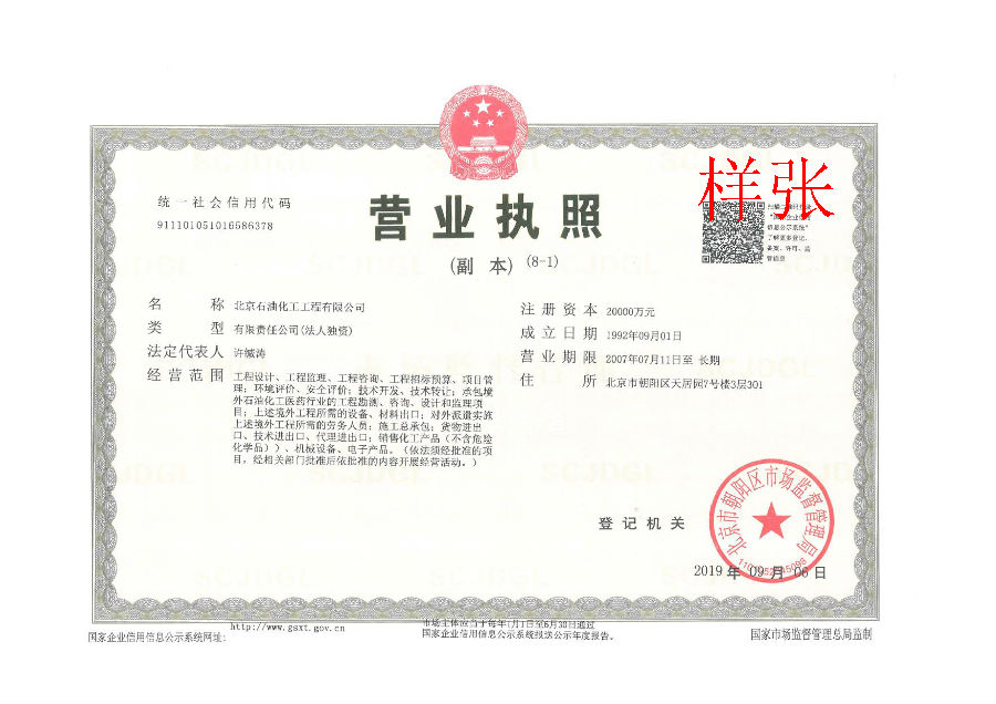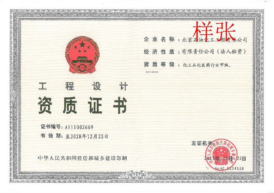 工程設(shè)計(jì)資質(zhì)證書(化工石化醫(yī)藥行業(yè)甲級(jí))