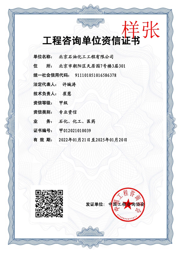 工程咨詢單位甲級(jí)資信證書(石化、化工、醫(yī)藥)
