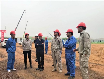 在中秋、國慶雙節(jié)前夕,北京石油化工工程有限公司黨委書記、董事長許緘濤到公司總承包的榆神能化50萬噸/年煤基乙醇項目現(xiàn)場慰問調(diào)研。公司董事、總經(jīng)理助理鄭薇,總經(jīng)理助理田平漢陪同調(diào)研。