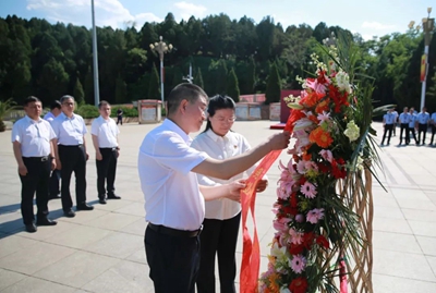 參觀結(jié)束后,全體人員來到五大書記銅像前,莊嚴(yán)肅立,奏唱國歌。公司黨委書記、董事長許緘濤,黨委副書記、總經(jīng)理田偉共同向五大書記雕像敬獻(xiàn)花籃并行鞠躬禮。在田偉帶領(lǐng)下,大家面向黨旗,重溫入黨誓詞,一同感受毛澤東等老一輩革命家胸懷天下、一心為民的家國情懷。
