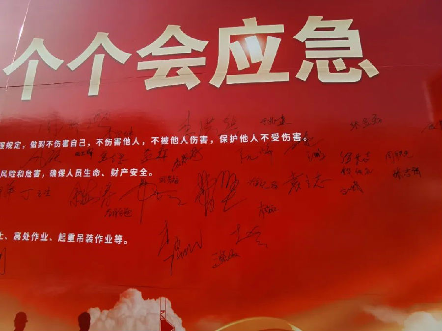 隨后,與會人員依次在“安全生產(chǎn)月”簽字墻上簽下自己的名字。通過“安全生產(chǎn)月”活動的開展,警醒員工對安全的感知,增強安全生產(chǎn)的責(zé)任感,時刻繃緊安全弦,堅守安全紅線,自覺規(guī)范操作,真正做到學(xué)安全、懂安全、能安全。