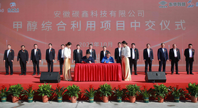 10月20日,位于安徽(淮北)新型煤化工合成材料基地的安徽碳鑫科技有限公司甲醇綜合利用項(xiàng)目中交儀式在現(xiàn)場(chǎng)舉行。