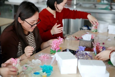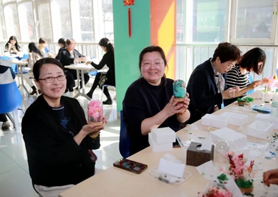 為增強(qiáng)慶;顒拥娜の缎浴⑻魬(zhàn)性、協(xié)作性,組織開展手工制作“永生花”體驗活動;顒又校ぷ魅藛T提前將材料進(jìn)行分類準(zhǔn)備好,并詳細(xì)講解“永生花”的制作流程和技巧。大家邊學(xué)邊交流經(jīng)驗,以塑刀為針,以膠水為線,紛紛動起手來,傾力展示自己豐富的想象力和創(chuàng)造力,將工作中的細(xì)心、專心、耐心投入到“永生花”的制作上。經(jīng)過個把小時,女職工們制作出了一朵朵精美的“永生花”,看著自己親手制作的作品,大家臉上洋溢著滿滿的成就感和幸福感;馃岬姆諊,也將此次“三八”節(jié)活動推向了高潮。