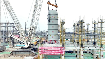 乙酸甲酯加氫反應器是該項目乙醇裝置的核心設(shè)備,最大直徑達5.7米,重621噸。該設(shè)備承擔著乙醇生產(chǎn)的核心任務,對控制反應條件、提升乙醇生產(chǎn)率以及優(yōu)化工藝經(jīng)濟性具有重要作用。截至目前,項目乙醇裝置整體設(shè)計已完成91.09%,采購進度達41.67%,核心設(shè)備陸續(xù)開始吊裝,土建工程多個關(guān)鍵節(jié)點也已順利完成。下一步,項目部將搶抓項目建設(shè)安裝的“黃金期”,高質(zhì)量、高標準推進各項工作,確保項目既定目標如期實現(xiàn)。(通訊員/王超 攝/王超)