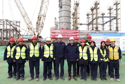 吊裝儀式上,北油工程公司副總經(jīng)理尹長炳在致辭中表示,凱越煤化50萬噸/年甲醇制乙醇項目是北油工程與延長集團在乙醇領(lǐng)域的又一次重要合作。公司將以高標準、嚴要求推進后續(xù)建設(shè)任務,確保設(shè)備吊裝和安裝工作順利完成,同時加強項目管理和施工組織策劃,保障工程質(zhì)量和安全。