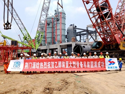 荊門源晗乙醇項(xiàng)目核心反應(yīng)器全部吊裝就位