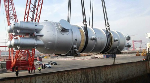 世界最大產(chǎn)能甲醇合成塔運(yùn)抵延能化項(xiàng)目現(xiàn)場(chǎng)