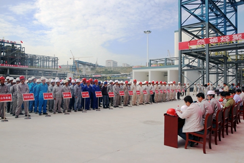 大會(huì)現(xiàn)場(chǎng),公司董事長在表態(tài)發(fā)言中確立三點(diǎn)目標(biāo),一是入冬前完成高中壓蒸汽管線的吹掃工作和所有機(jī)組單機(jī)試車,加快完成所有具備條件的烘爐、烘襯工作;二是乙丙橡膠裝置完成全部土建和60%安裝工程,其他裝置完成全部的實(shí)物工作量;三是硫回收、PP、PE、甲醇、2PH裝置及公輔設(shè)施年底具備中交條件,其余裝置力爭(zhēng)具備中交條件。