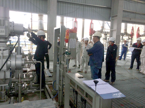 為順利完成兩臺(tái)壓縮機(jī)負(fù)荷試車,項(xiàng)目組抽調(diào)技術(shù)骨干,配合業(yè)主對(duì)界區(qū)介質(zhì)(中壓蒸汽、氮?dú)、儀表風(fēng)、循環(huán)水等)運(yùn)行參數(shù)、提前啟動(dòng)汽輪機(jī)暖機(jī)、防喘振系統(tǒng)調(diào)試及模擬測(cè)試、一二三級(jí)系統(tǒng)管支架、儀表運(yùn)行及參數(shù)等環(huán)節(jié)逐一進(jìn)行了核查。在完成機(jī)組、系統(tǒng)、安全等相應(yīng)手續(xù)簽字后,下午16時(shí)35分,丙烯制冷壓縮機(jī)組開(kāi)始負(fù)荷試車,經(jīng)過(guò)3個(gè)小時(shí)的平穩(wěn)運(yùn)行后,中控顯示系統(tǒng)溫度、壓力、機(jī)組振動(dòng)值均在正常運(yùn)行范圍內(nèi)。隨后,試車團(tuán)隊(duì)又開(kāi)始乙烯制冷壓縮機(jī)機(jī)組的負(fù)荷試車。晚上22時(shí)10分,該設(shè)備運(yùn)行平穩(wěn),各項(xiàng)參數(shù)運(yùn)行數(shù)據(jù)正常,試車一次成功。至此,ACO裝置同日完成了兩臺(tái)壓縮機(jī)試車任務(wù)。